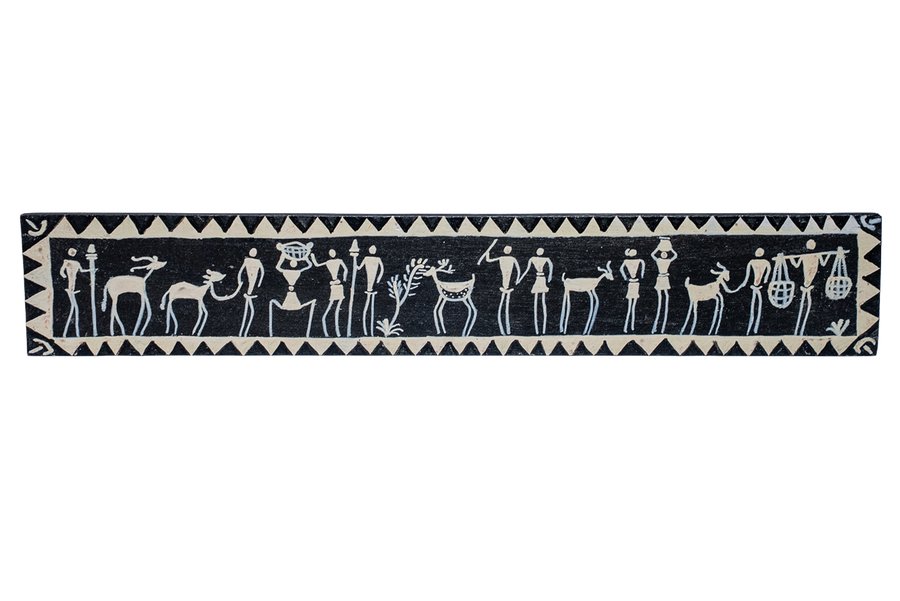 • Authentic Tribal Art: Beautiful 2 x 12 inches Savara Adivasi painting depicting tribal scale black. Created by tribal artisans using traditional painting techniques passed down through generations in the tribal communities of Andhra Pradesh.